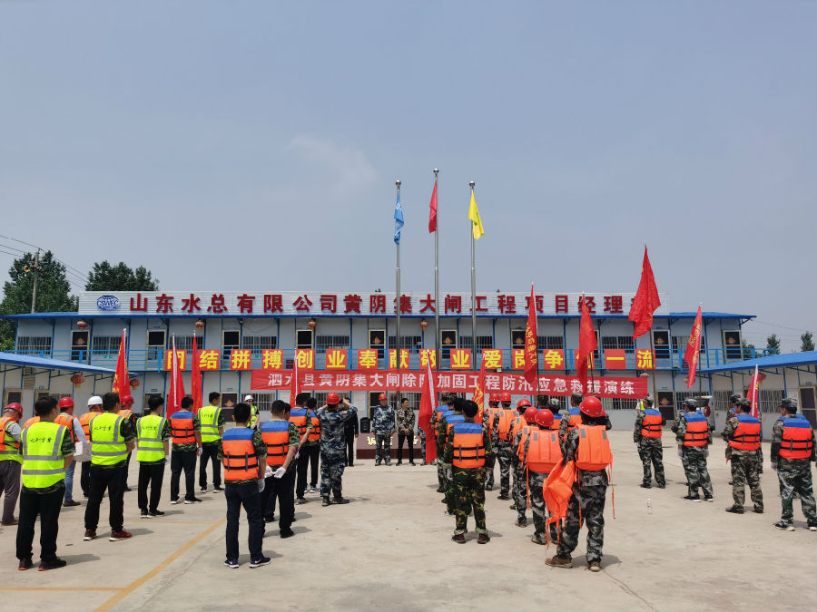 5月15日上午,乐竞网页版泗水县泗河黄阴集大闸除险加固工程1标项目经理部联合泗水县水务局、泗水县应急局、泗水县防汛指挥部等单位开展了黄阴集大闸除险加固工程防汛应急救援演练。本次模拟演练设置坝前坍塌抢护、坝后管涌抢护、增高子堰抢护、坝后渗水面抢护、紧急心肺复苏救援5个演练场景。