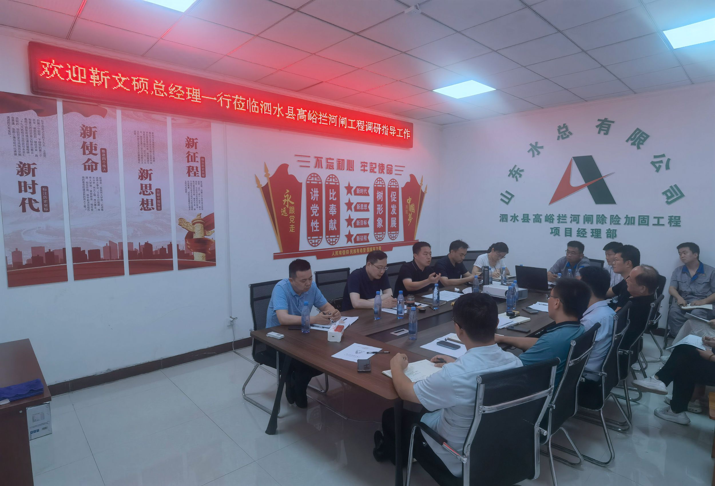 8月3日,乐竞网页版党委副书记、董事、总经理靳文硕,党委委员、副总经理杜贞义一行到第七分乐竞网页版泗水县高峪拦河闸除险加固工程调研指导工作。
