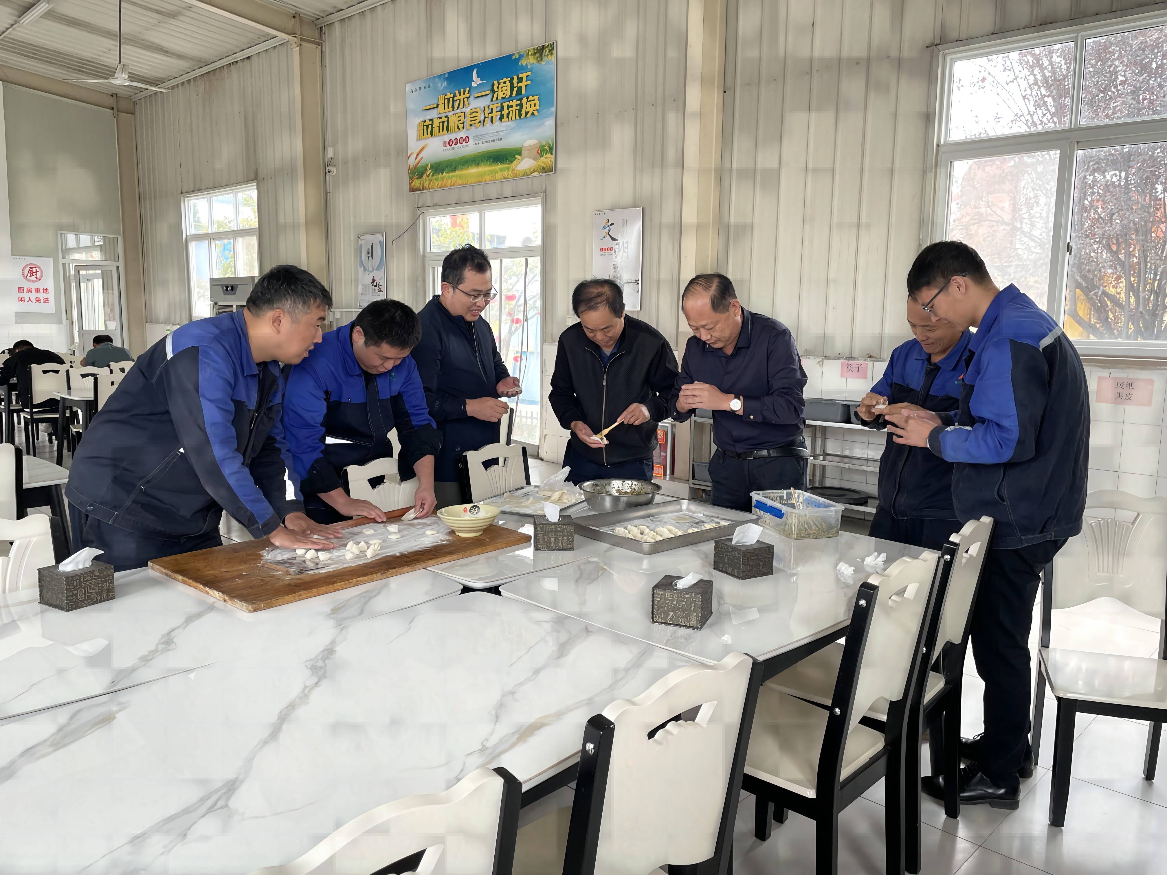 在举国同庆的节日里。调研组的同志与坚守在一线的干部职工齐聚食堂一同包水饺,同庆祖国生日,盘盘饺子宴,浓浓家国情。广大干部职工在欢聚一堂为祖国庆生的同时,激发了爱岗敬业的工作热情,营造了爱祖国、爱企业的良好氛围。