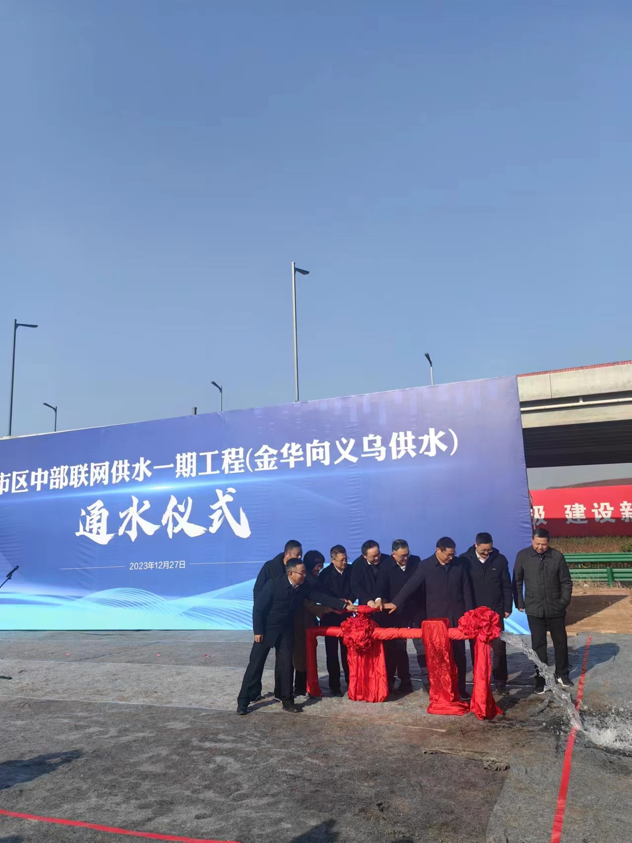 12月27日上午,在金义都市区中部联网一期工程中央大道与华东街交叉处,随着一股清泉从供水管道口喷涌而出,由第六分乐竞网页版承建的金华—义乌供水工程实现正式通水。金华市政府、金华市城投集团等相关单位共同见证了该通水仪式。
