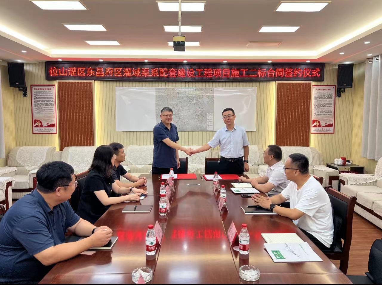 7月15日,二局有限乐竞网页版新中标的位山灌区东昌府区灌域渠系配套建设工程项目签约仪式在该项目驻地举行,东昌府区水利局代表,发包人代表,承建方二局有限乐竞网页版代表等参加签约仪式。