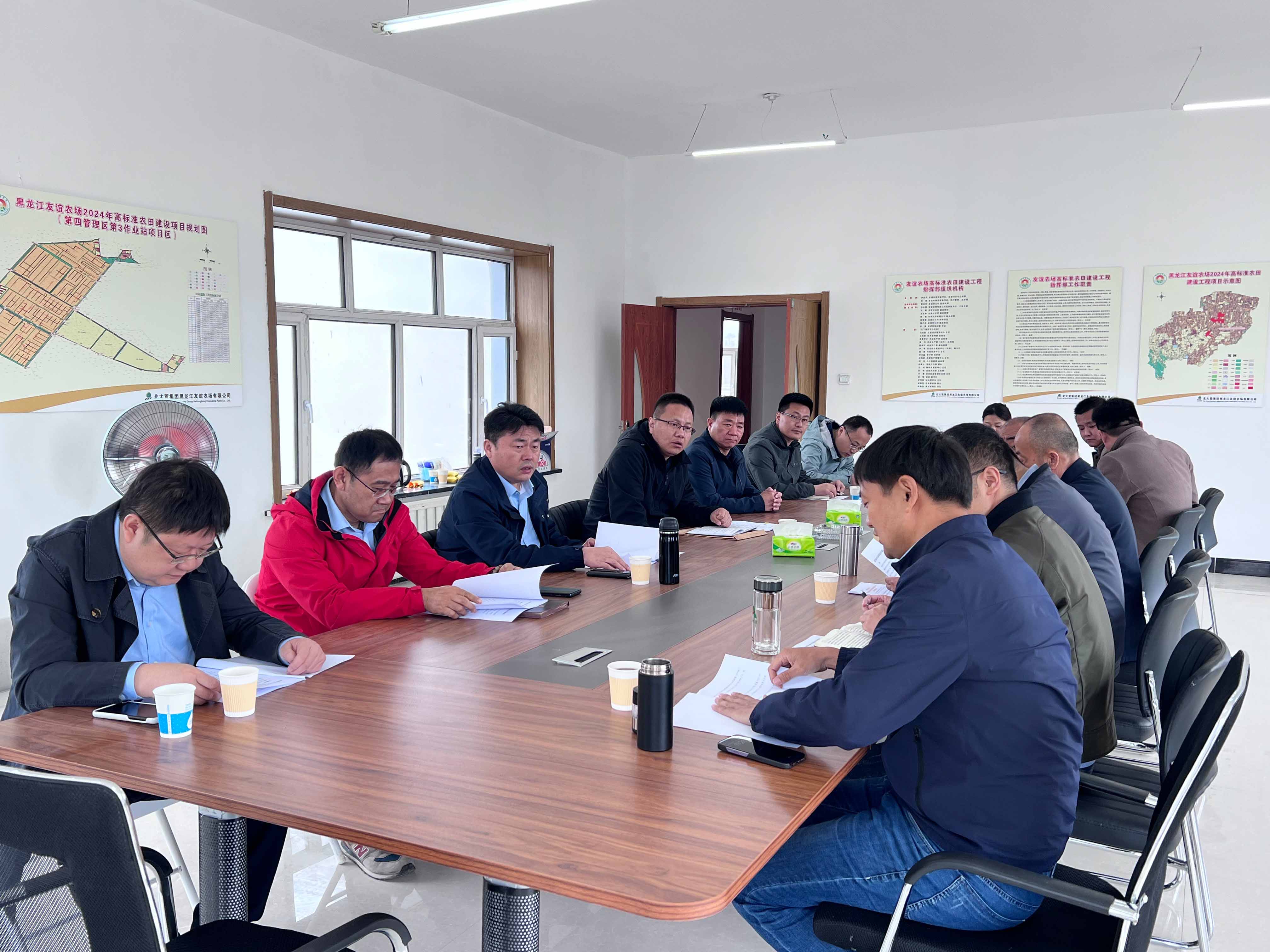 裴文晶一行首先来到黑龙江省粮食产能提升项目了解项目进展,并同项目部一线人员进行交流。随后,调研组来到黑龙江友谊农场2024年高标准农田建设项目,同北大荒集团黑龙江友谊农场有限乐竞网页版副总经理樊庆华进行会谈。双方对当前项目的总体进度、面临的机遇和挑战进行了分析和研讨,并对下一步如何加强合作进行深入交流,展望两家省级国有企业合作的未来,努力发挥山东水总基础建设和北大荒集团农业生产运营的优势,打造出“1+1>2”的效果。