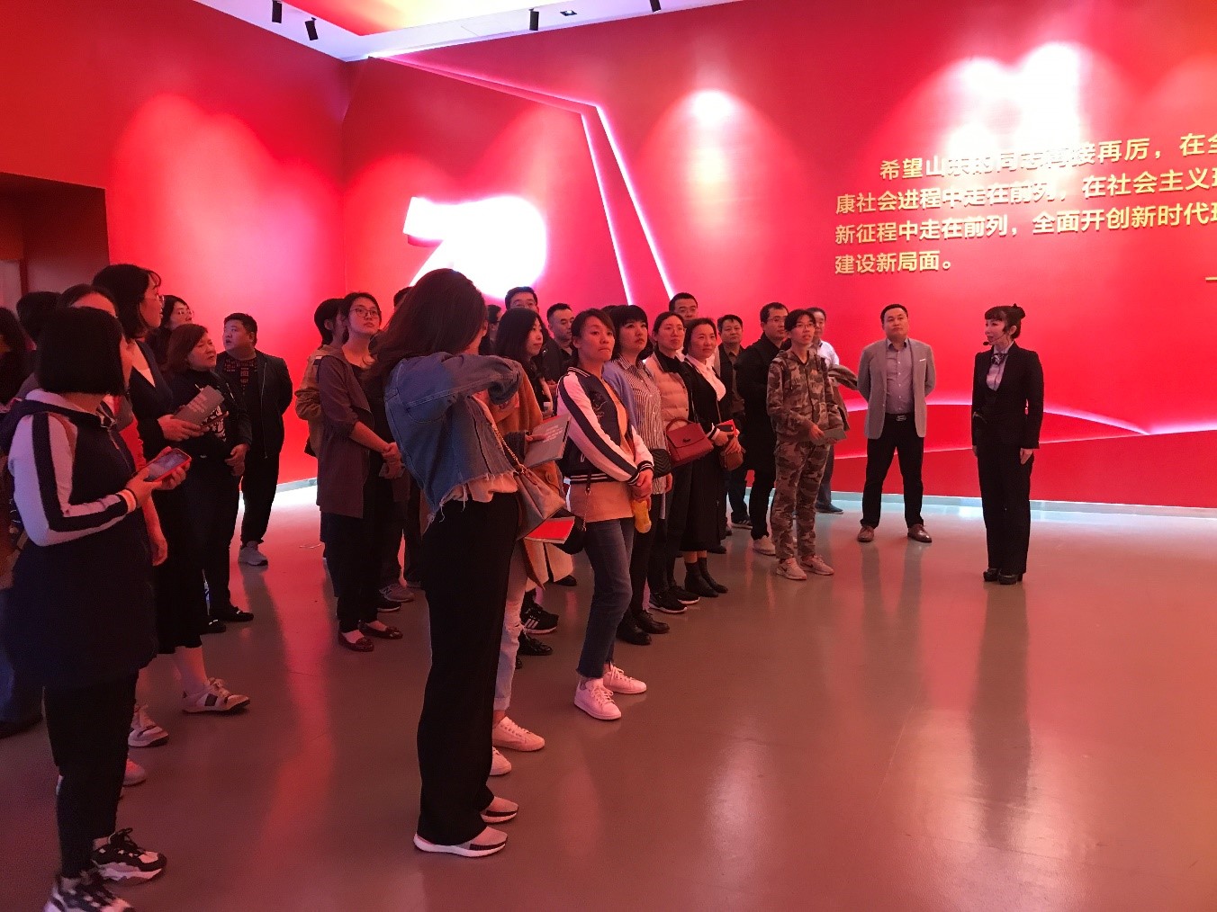 通过此次观展,同志们现场感受到新中国成立以来特别是改革开放以来党和国家事业发展的伟大成就,极大激发了爱国之情和强国之志。大家表示,山东70年的发展变化也是新中国成立70周年历史变迁的缩影,充分彰显了中国共产党领导的政治优势和中国特色社会主义制度的巨大优越性。山东70年取得的成就,祖国70年的光辉历程不但激发了自己的自豪感,荣耀感,更激励自己牢记初心使命,立足本职岗位,奋力开拓进取!