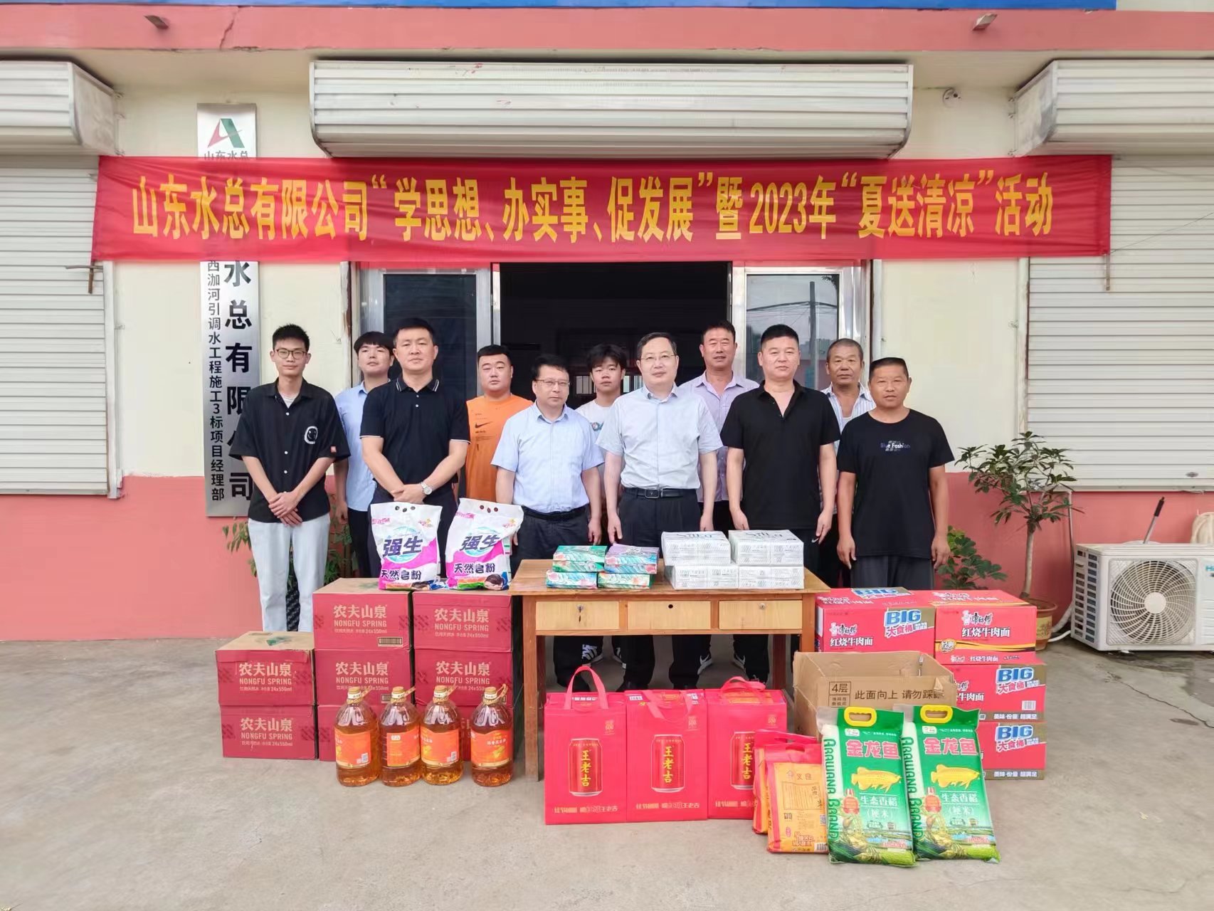 7月27日,乐竞网页版党委委员、副总经理杜贞义等一行人到第六分乐竞网页版枣庄市市中区西泇河引调水工程项目开展“学思想、办实事、促发展”暨2023年“夏送清凉”慰问活动。