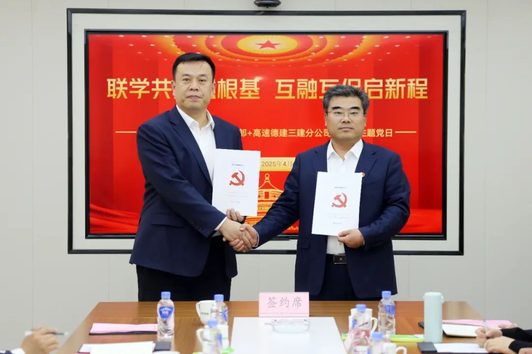 交流会上,山东水总第五分乐竞网页版党支部书记蔡国森同志、山东高速德建三建分乐竞网页版党支部书记李杰同志共同签订《党建结对共建合作协议》,并就支部工作开展情况进行简要介绍,对共同抓好党建共建,服务项目高质量建设进行交流。